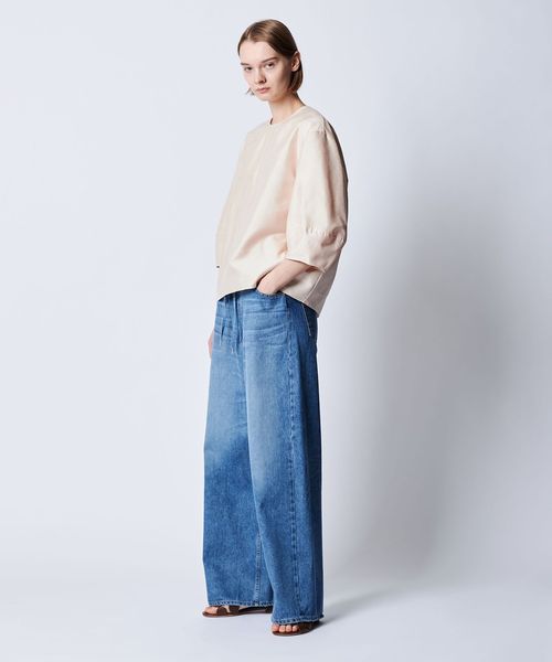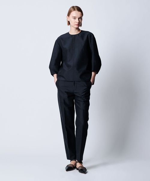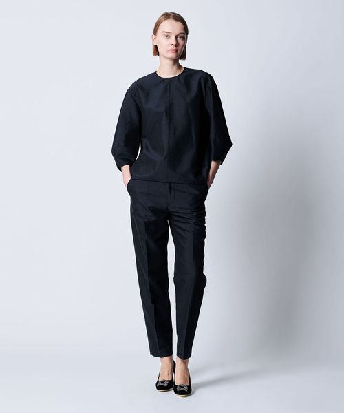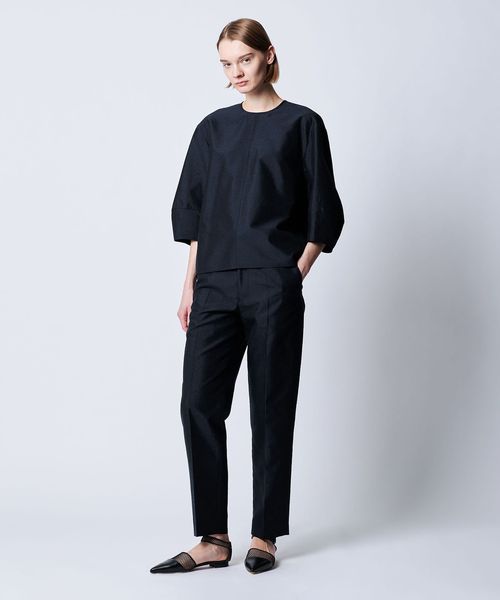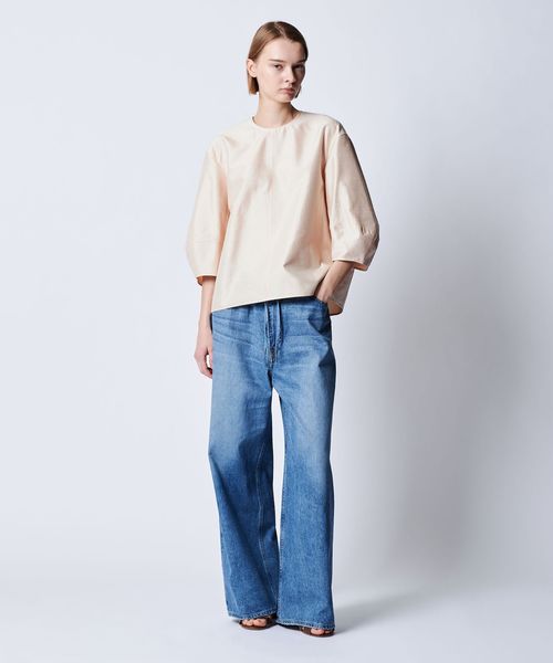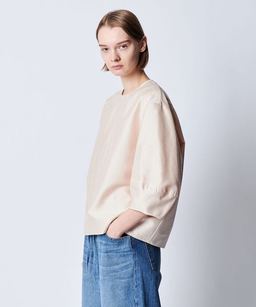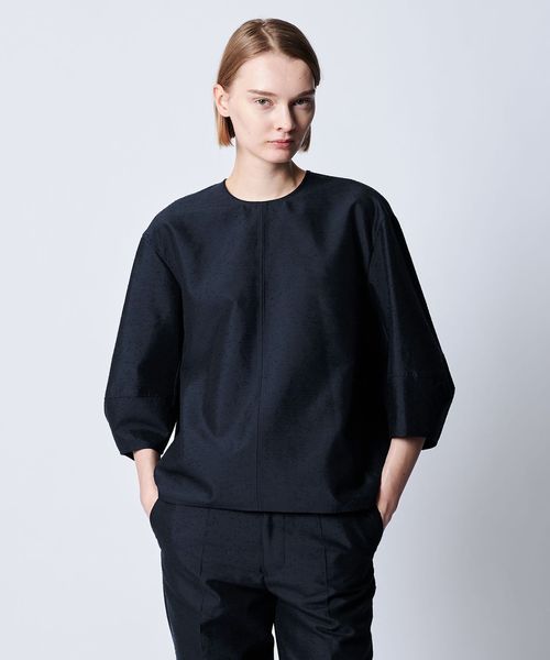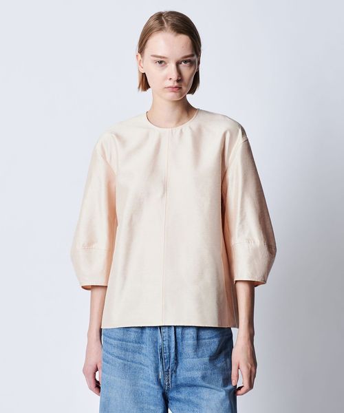 美しい表情を持つ生地が際立つショートスリーブのブラウス。
