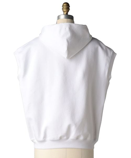 クリアなホワイトカラーがポイントのスリーブレスフーディー