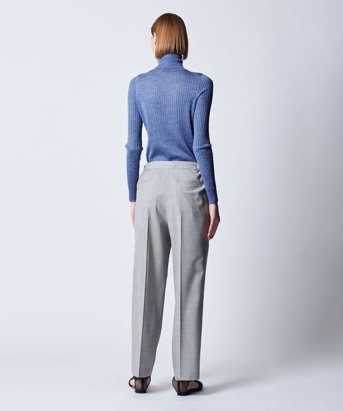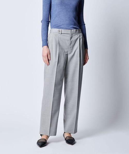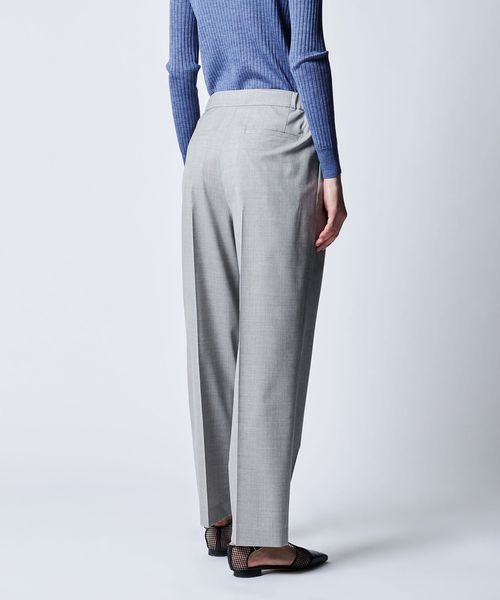 ウェストサイドにギャザーを入れたほどよいフィット感のあるテーパードパンツ。
