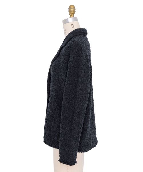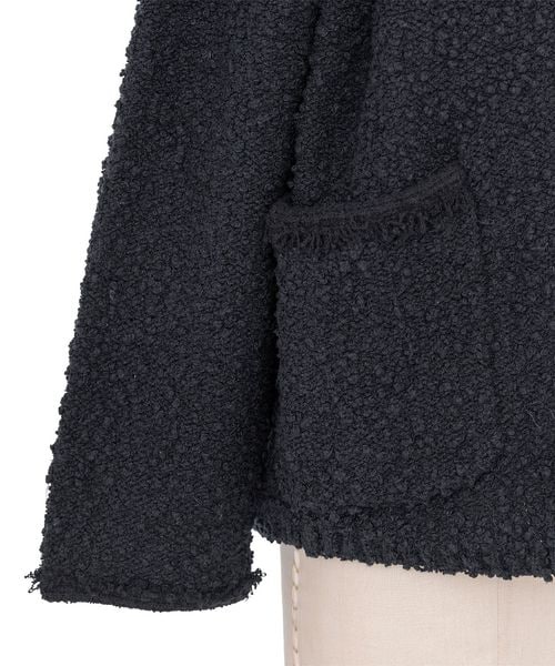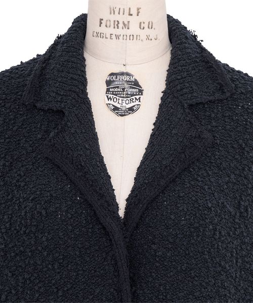 ツイードのような表情を持つニット素材を活かしたジャケットデザインのカーディガン。