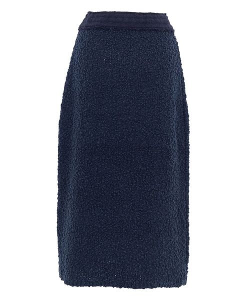 ツイードのような表情を持つ素材とペンシルラインがシャープな雰囲気に仕上げます。