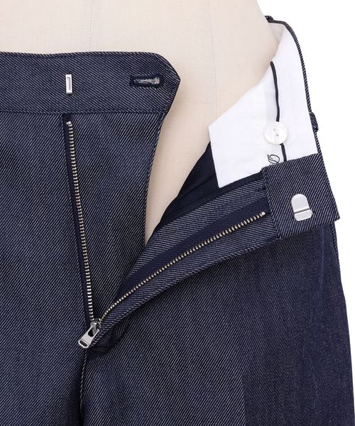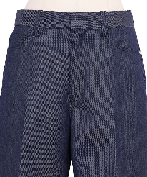 デニム調のカジュアルな雰囲気と、スラックスのように着こなせるドレッシーさが特徴。