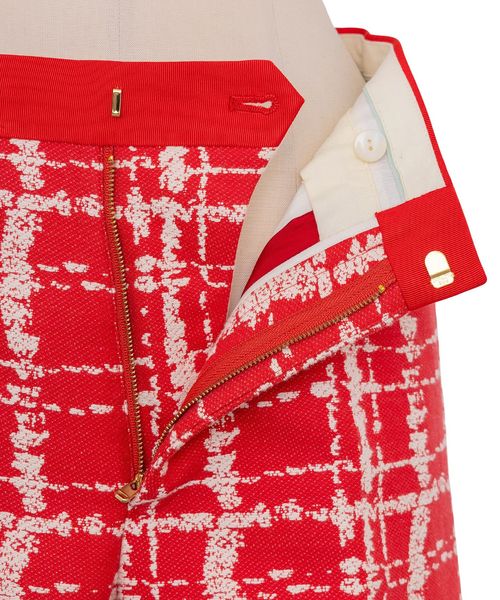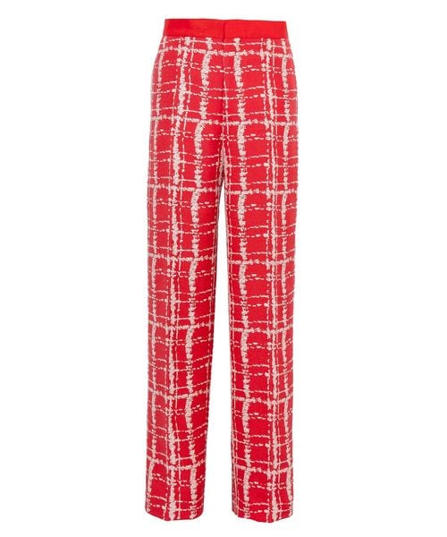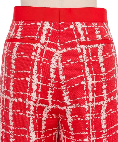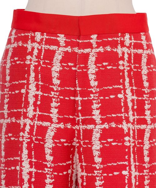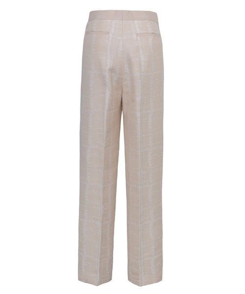 ジャガードで表現されたランダムなチェック柄が特徴のストレートパンツ