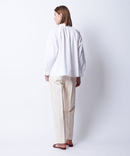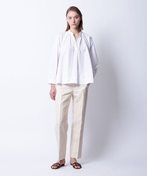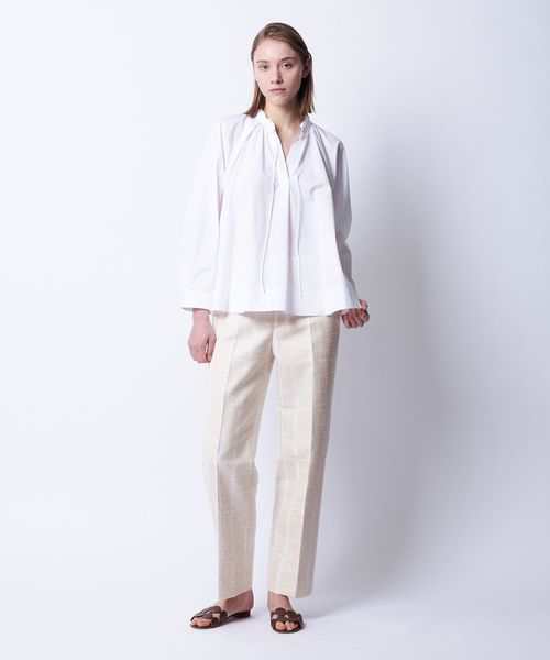 腰回りのフォルムをすっきりと仕上げたミドルライズのストレートパンツ。