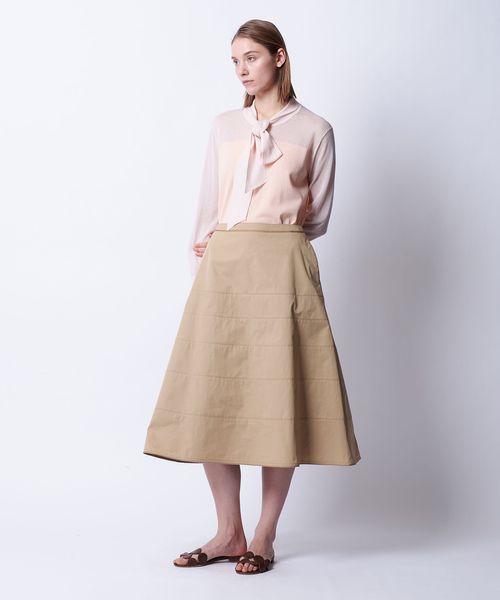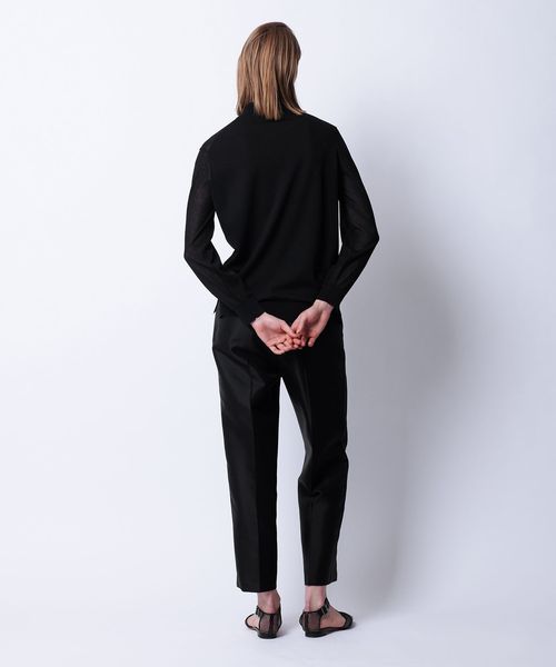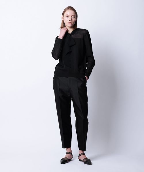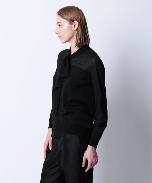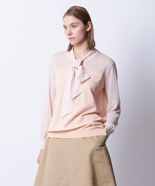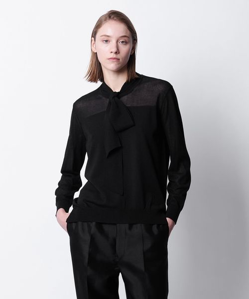 ほどよい透け感が軽やかな印象を与えるボータイロングスリーブニット
