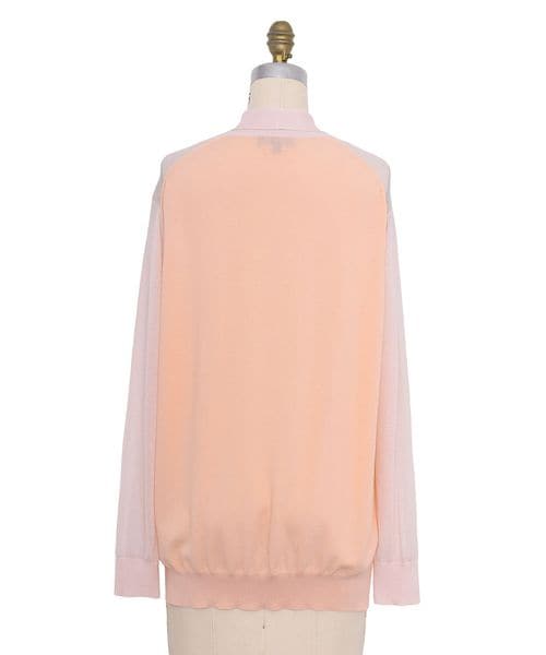 14ゲージの天竺編みニット。デコルテ部分は透けのある薄手の生地感。