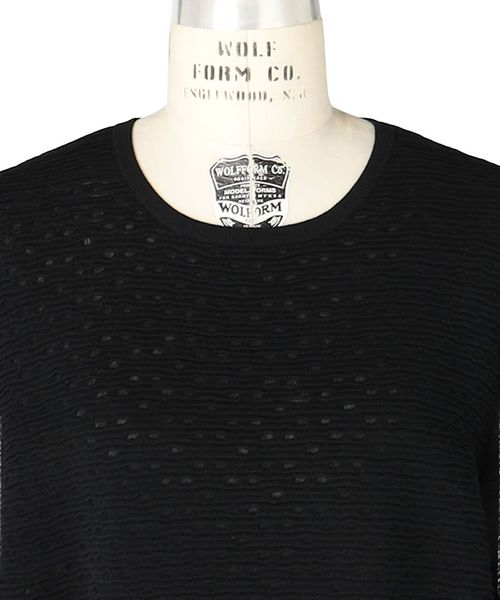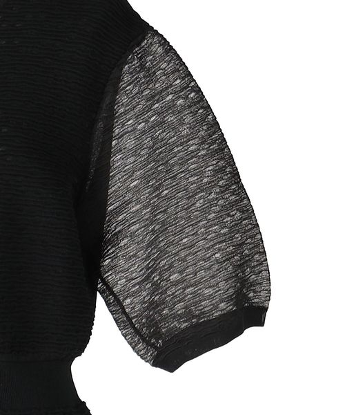 ボディと袖の素材を切り替え、袖にはシアーな編み地を使用しています。