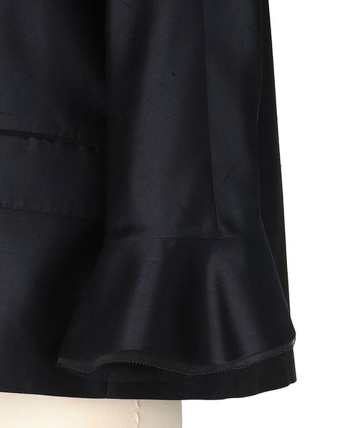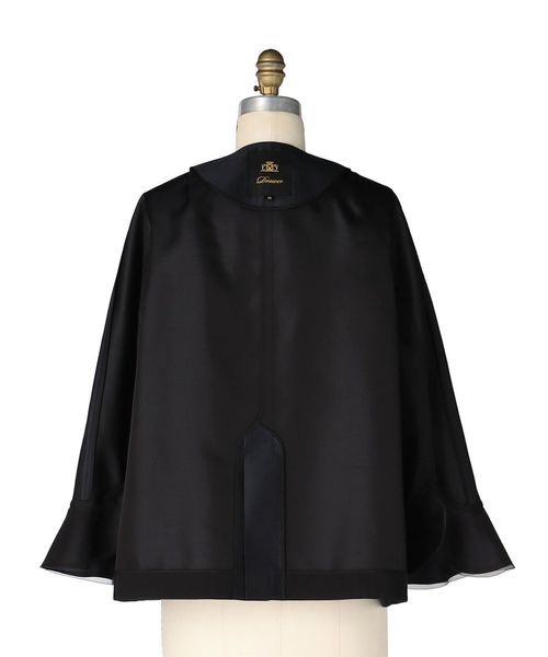 オーガンジーと2枚仕立てのスリットラッフルのカフスが華やかさをプラスするノーカラージャケット。