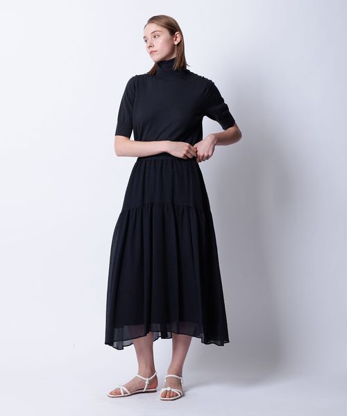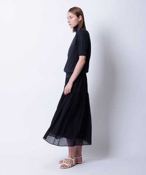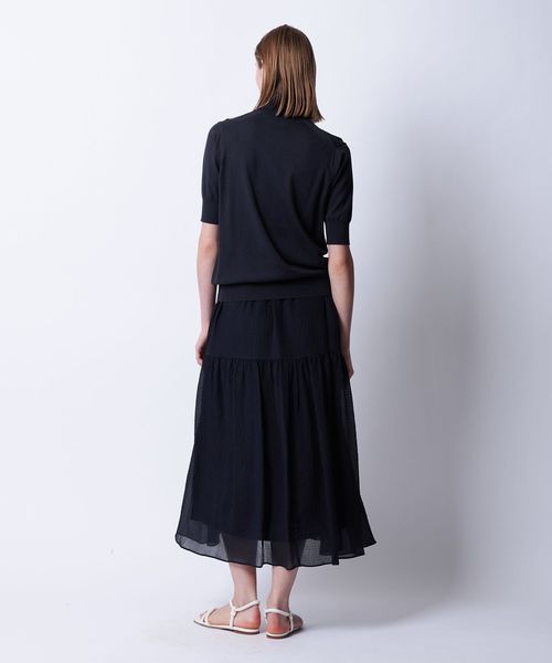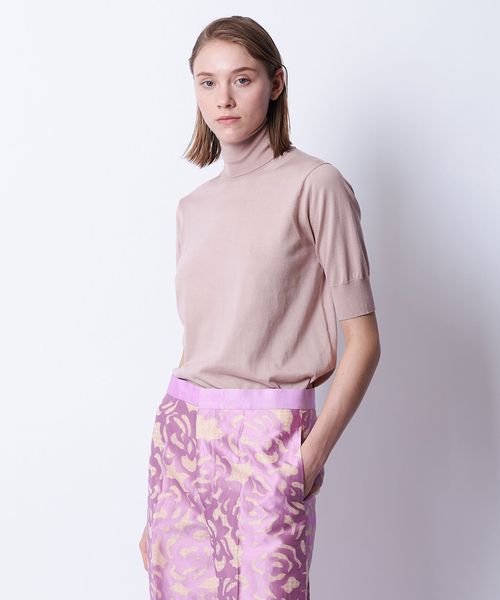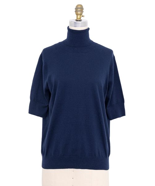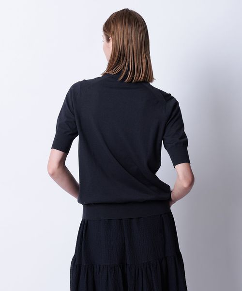 長めのスリーブデザインで1枚着でのスタイリングも映えるショートスリーブニット。