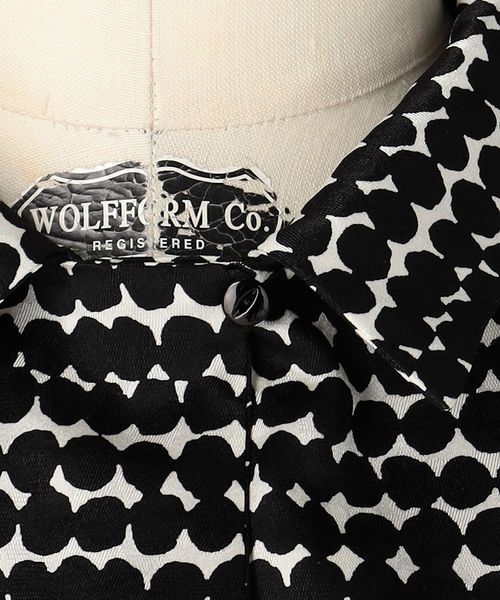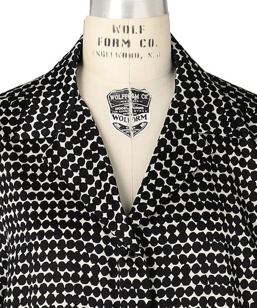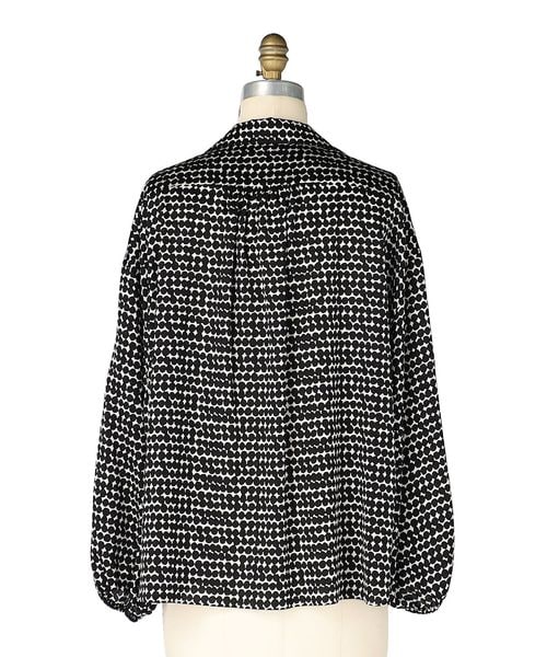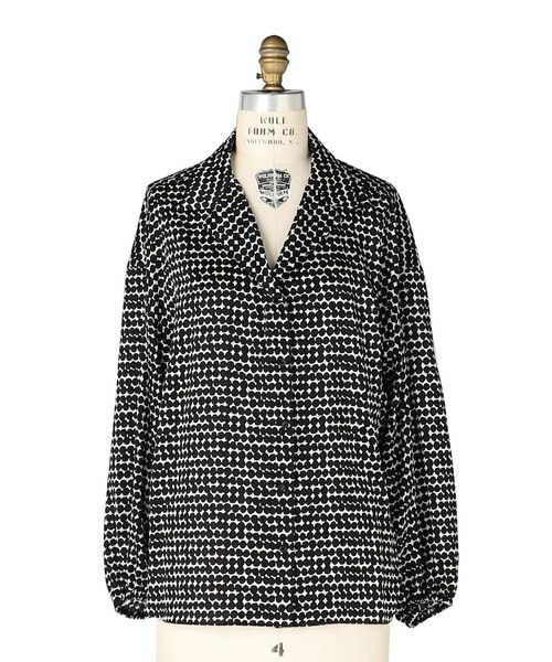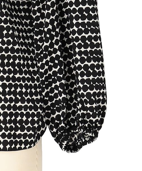 モダンな雰囲気のあるドット柄が目を惹くフロントボタン開きのブラウス。