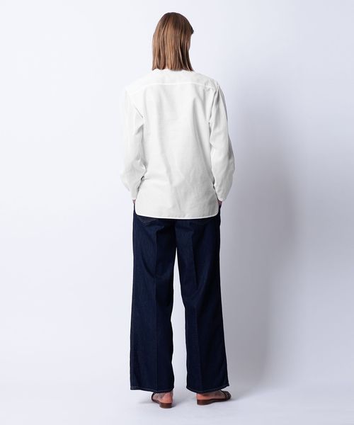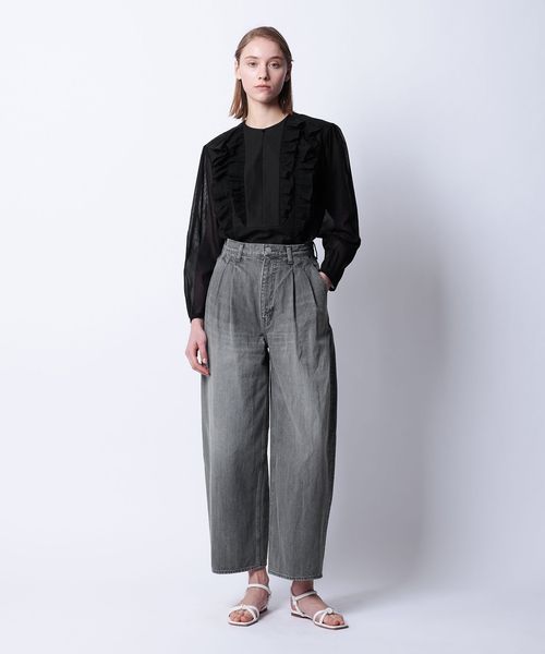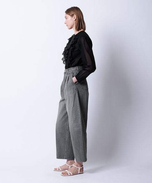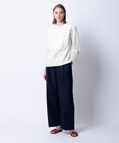 パンツやスカートにタックインしてもラッフルが映えるスタイリングに仕上がります。