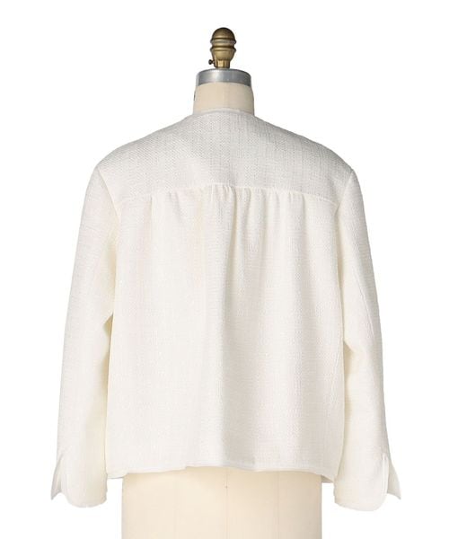 艶のあるホワイトカラーのツイードが美しく映えるジャケット
