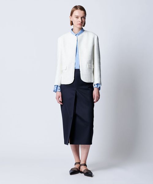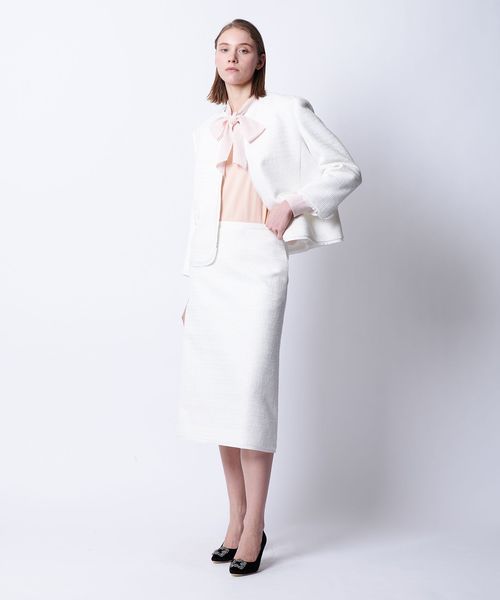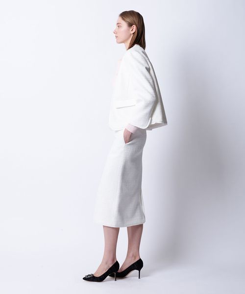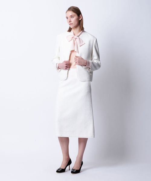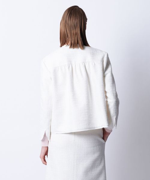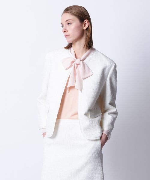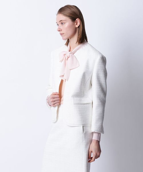 艶のあるホワイトカラーのツイードが美しく映えるジャケット