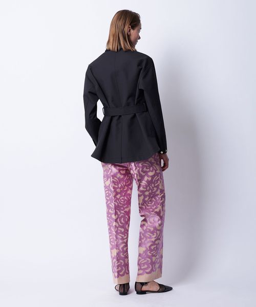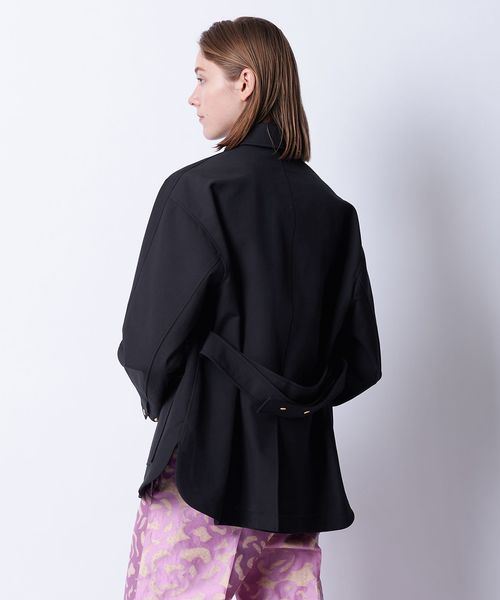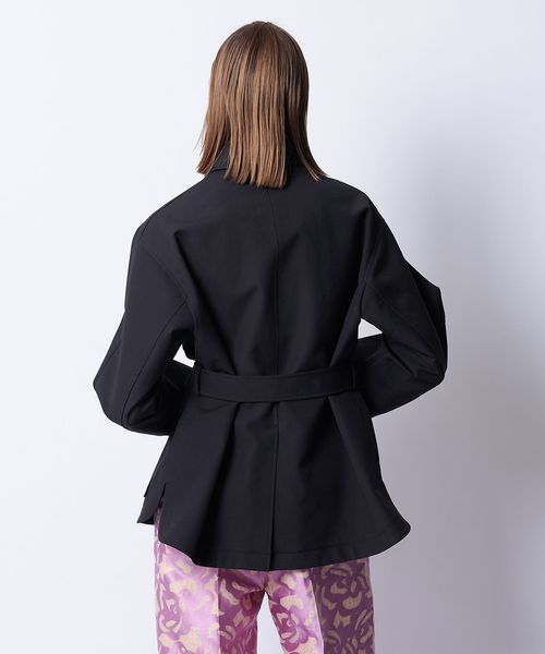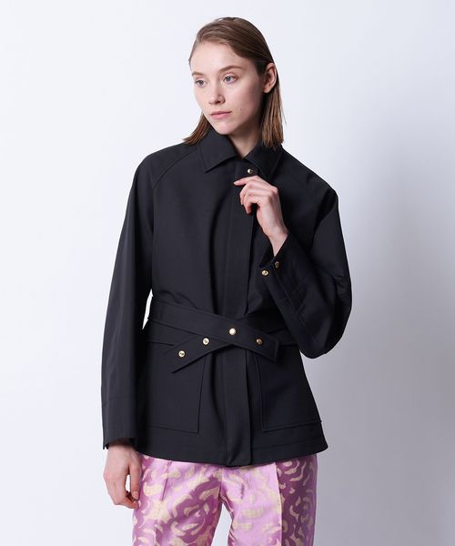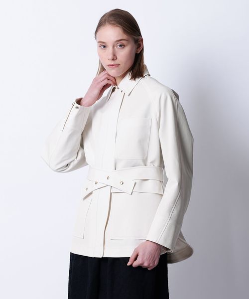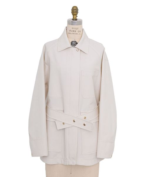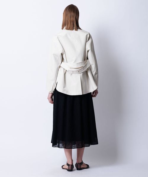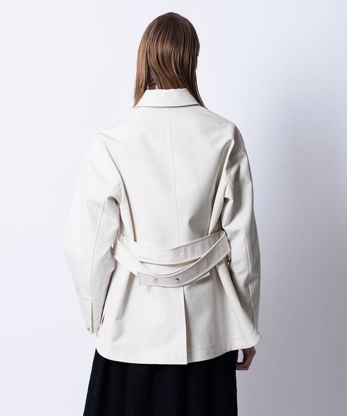 ウエストマークベルトは、フロントでドットボタン留め、後ろで輪にして留めるスタイリングができます。