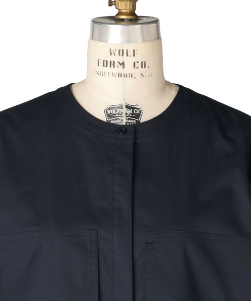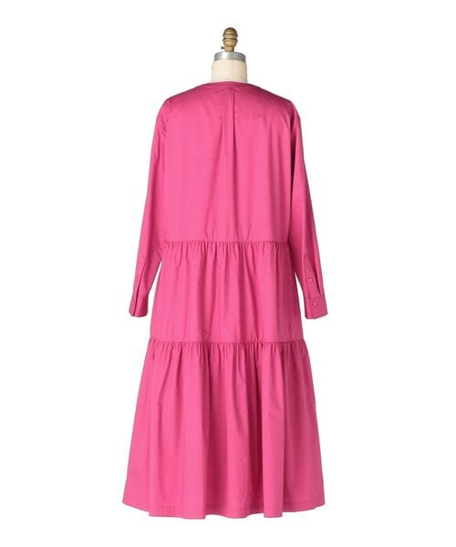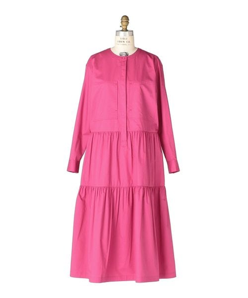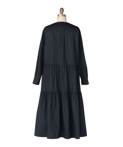 トップ部分はシャツデザインでシャープな印象、甘さのあるティアードデザインとのバランス感のよいロングスリーブワンピース。