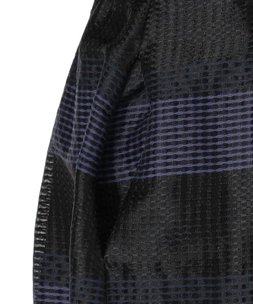 ツヤ感と透けのあるワイドボーダーのカスリジャガード素材。