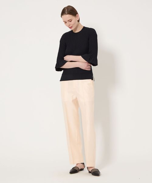 身体のラインを美しく演出するフィット感がポイントのリブ編みのニット。