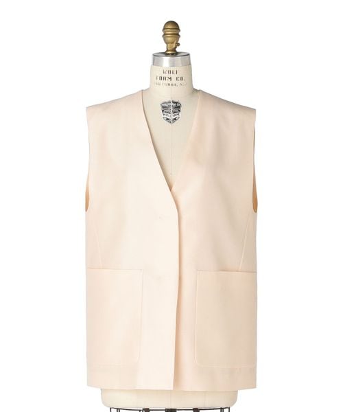 長めの丈感と縦長なシルエットがシャープな印象に仕上げるジレジャケット。