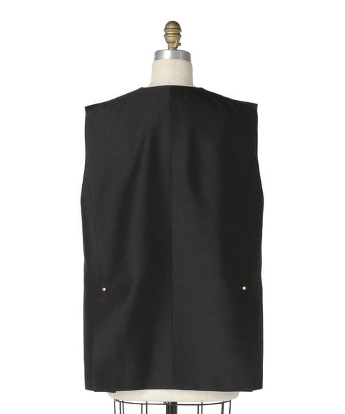 長めの丈感と縦長なシルエットがシャープな印象に仕上げるジレジャケット。