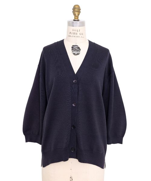 すっきりとした衿ぐりのラインで、プルオーバーのように1枚着でのスタイリングもできます。