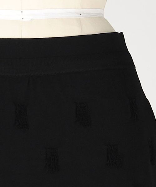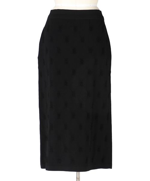 繊細な生地に施されたループフリンジとペンシルラインが美しいニットスカート
