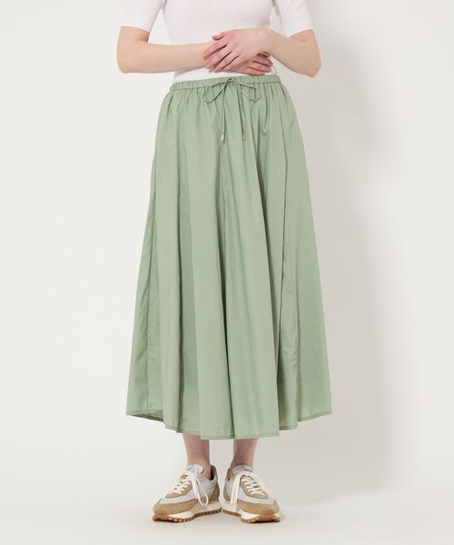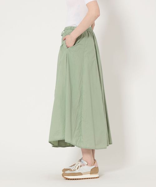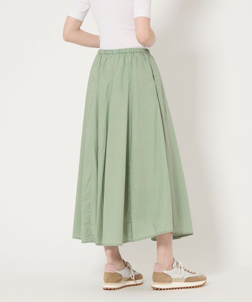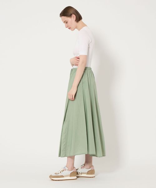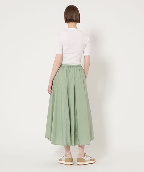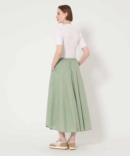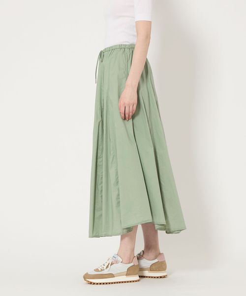 腰回りはほどよい分量感ですっきりと、ヘムに向かって展開されたフレアラインが美しいパネルスカート。