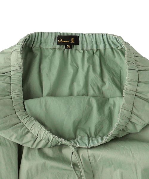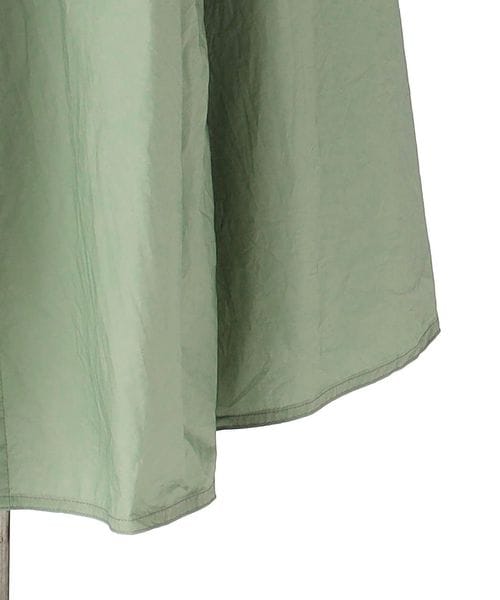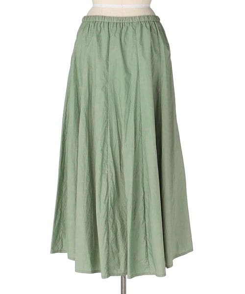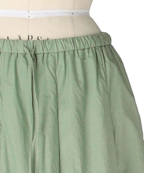 腰回りはほどよい分量感ですっきりと、ヘムに向かって展開されたフレアラインが美しいパネルスカート。