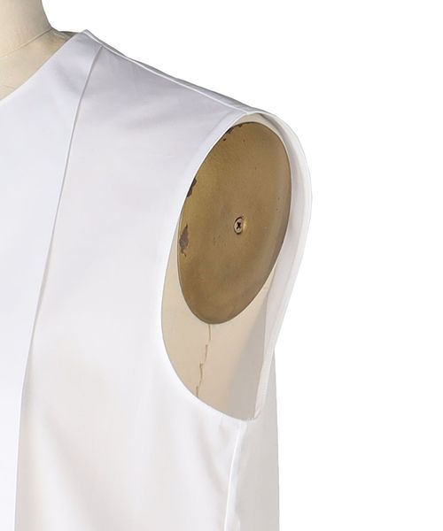 一枚でさらりと着こなせるホワイトカラーのノースリーブブラウス