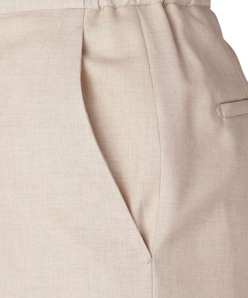 ウェストサイドにゴムが入ったフィット感とタックの入ったほどよいゆとりのある履き心地が特徴。