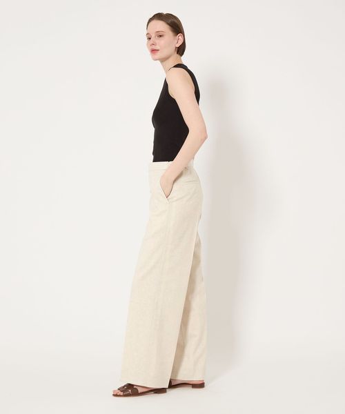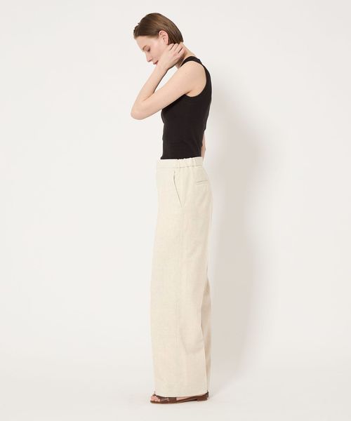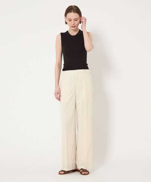 ウェストサイドにゴムが入ったフィット感とタックの入ったほどよいゆとりのある履き心地が特徴。
