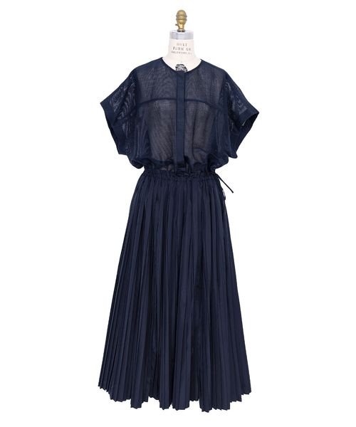 袖は身頃続きでゆったりとさせ、スカートの裾は段差を付けてイレギュラーなヘムラインが美しいデザインに。