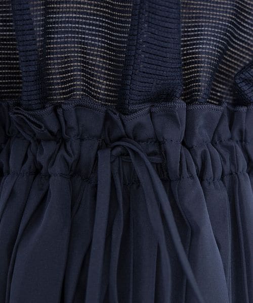 スカート部分には光沢感のあるタフタ素材に表情豊かなプリーツを施しています。