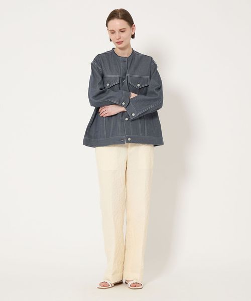 さらりと羽織れる抜け感あるノーカラーデニムジャケット