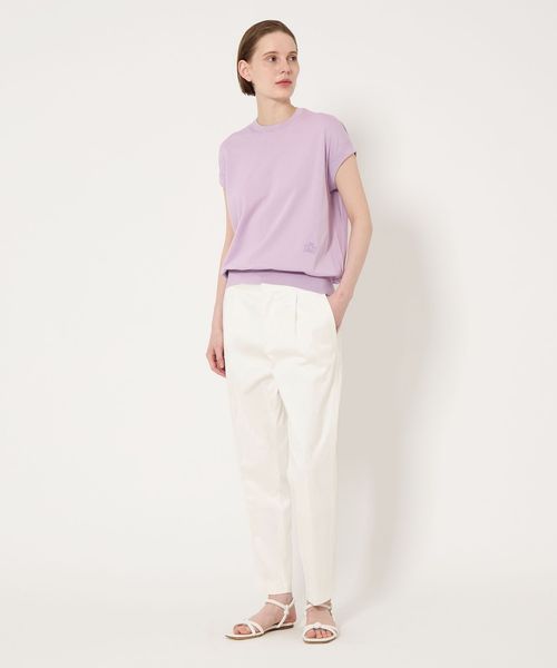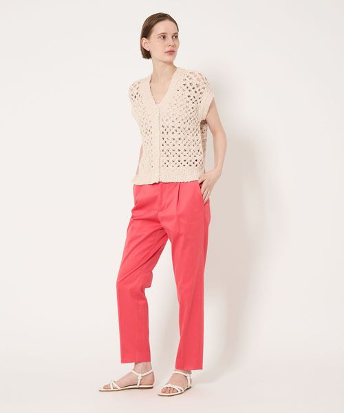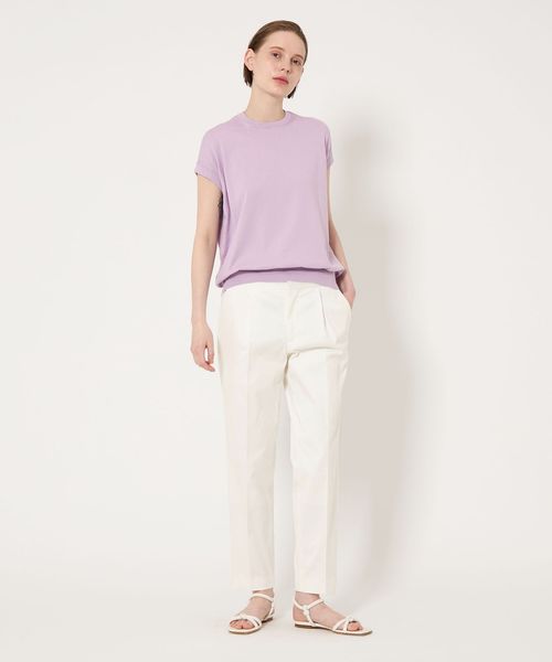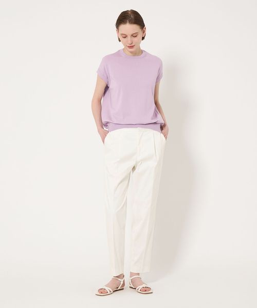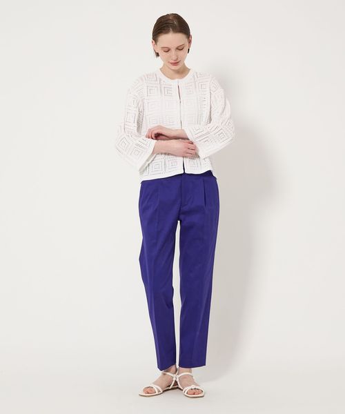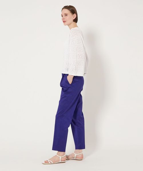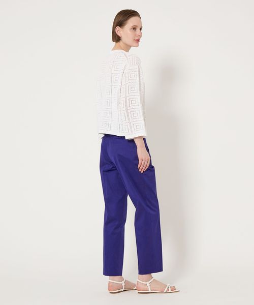 股上、渡りなどウェスト周りにほどよくゆとりを持たせながら、すっきりとしたフォルムに見せるクロップドパンツ。
