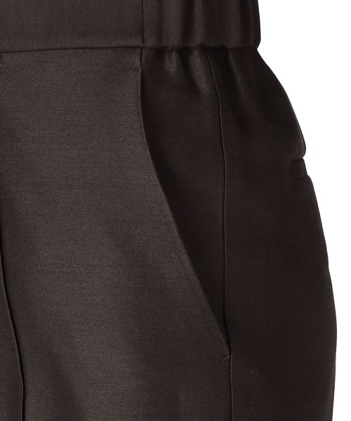 上品な素材感と美しいシルエットが魅力のパンツ