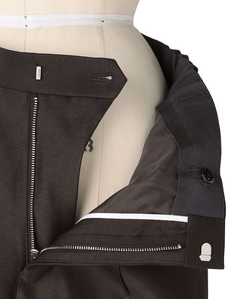 股上の深めでやや細身のスッキリとさせたシルエットとセンターシームが縦ラインを強調し美しいスタイルを演出。