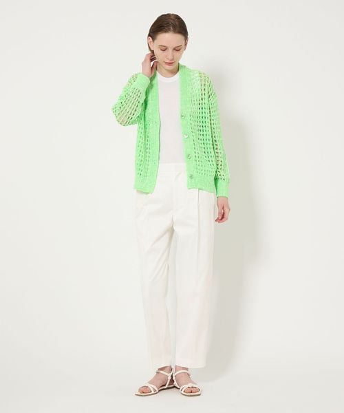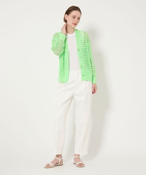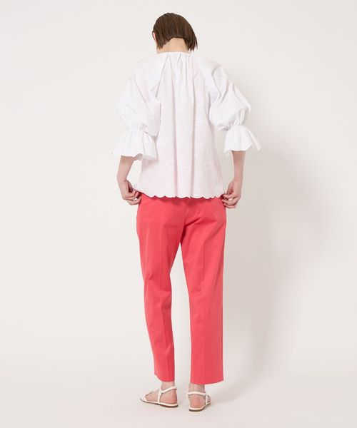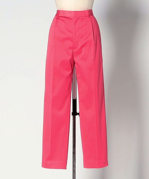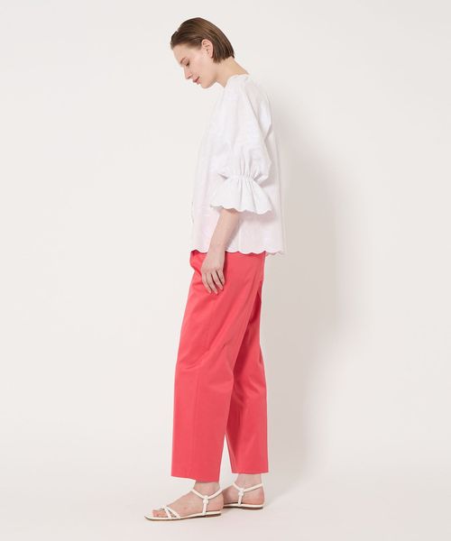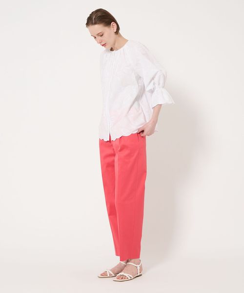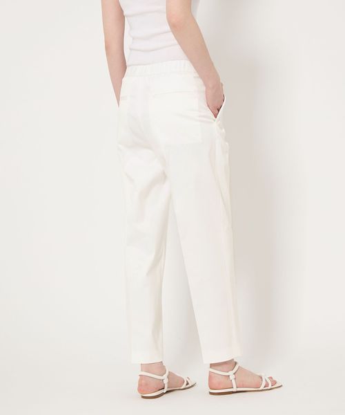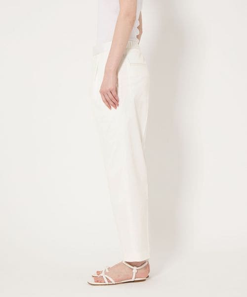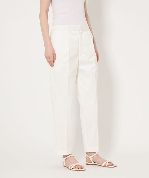 ややすっきりとしたクロップド丈のタックテーパードパンツ。