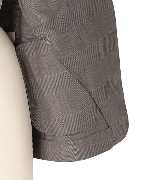 グレンチェック柄の細番手の梳毛のウール素材を使用。