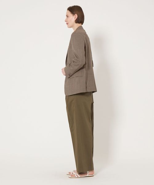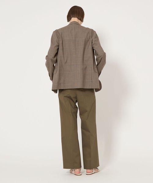 グレンチェック柄の細番手の梳毛のウール素材を使用。