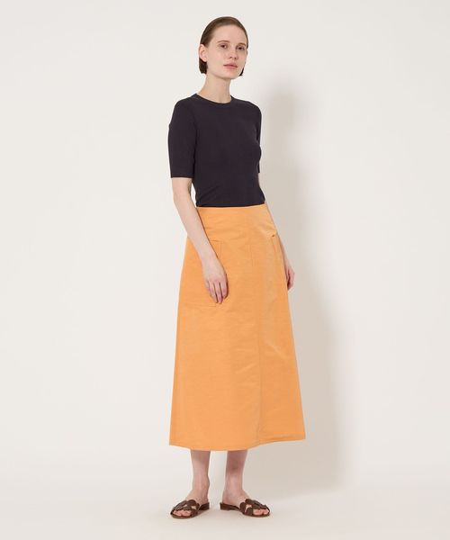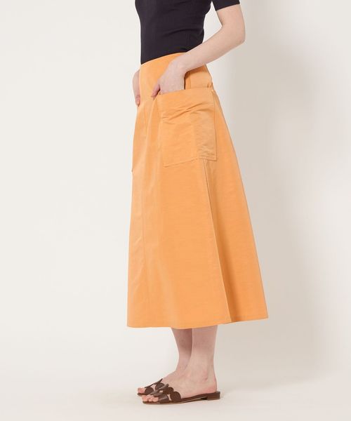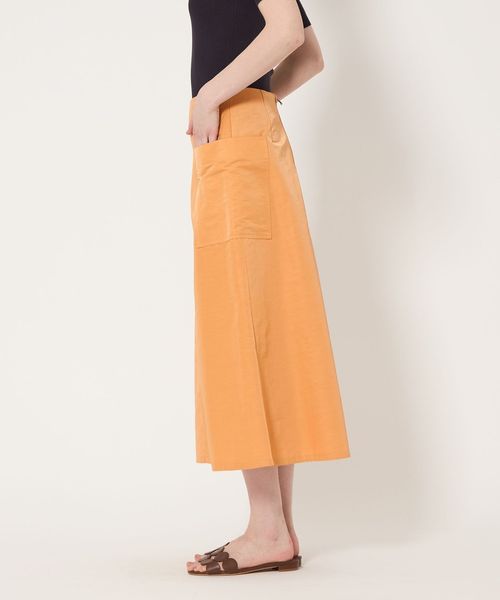 両サイドに配した大きなポケットがポイントになったAラインシルエットのフレアスカート。