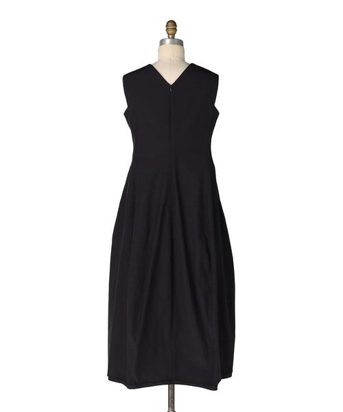 美しい立体的なコクーンシルエットが目を惹くノースリーブドレス