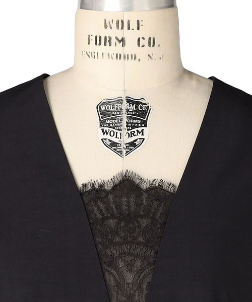 胸元あしらった繊細なレースがアクセントになったシックな雰囲気があるノースリーブドレス。