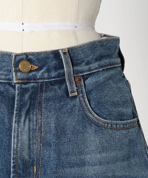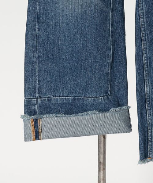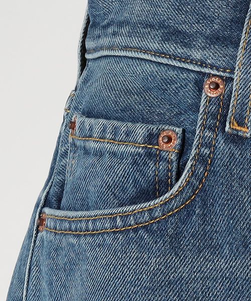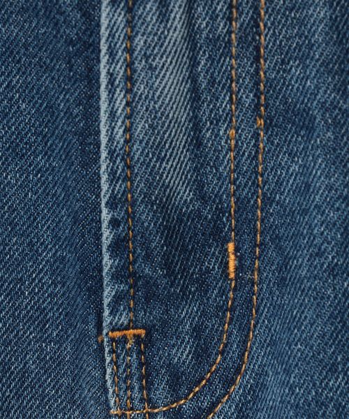 ミッドライズフィットジーンズ。ヒップから太ももにかけてスリムフィットで、ややフレアに脚の形を広げる独自の縫い目構造を採用しています。