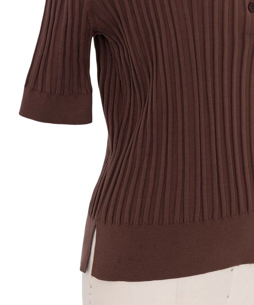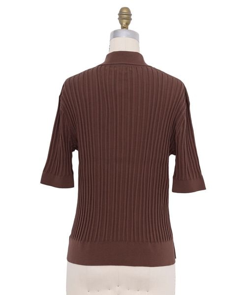 レギュラーカラーのきちんとした雰囲気と、すっきりとして見えるスリーブ丈で仕上げたショートスリーブニット。