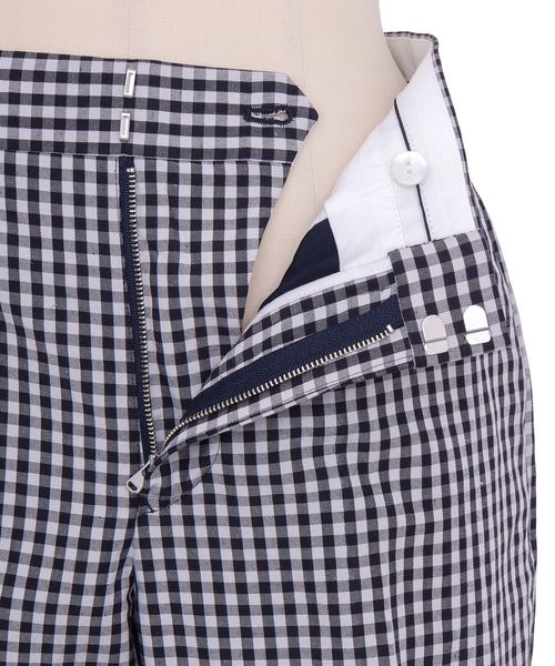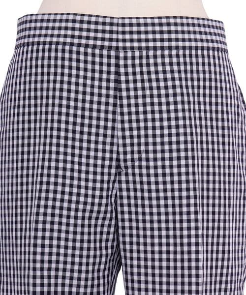 繊細なチェック柄が優雅な印象のテーパードパンツ