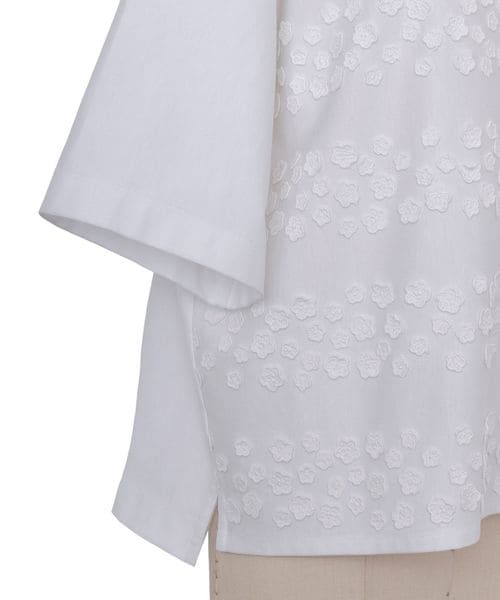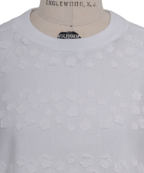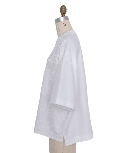 繊細なフラワー柄の刺繍をボーダー状に施したデザイン性のあるTシャツ。