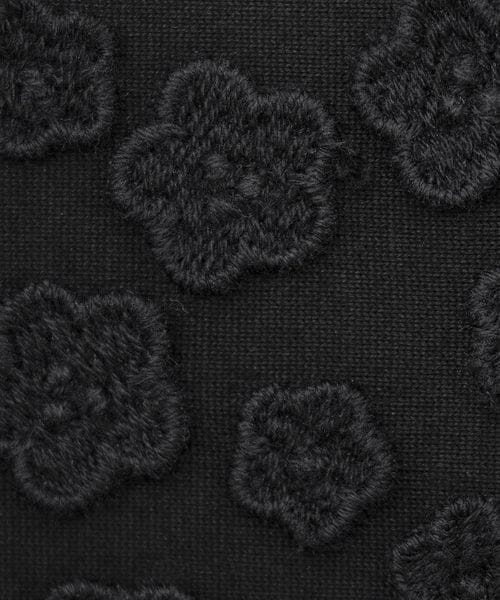 光沢感のあるきれいめの表情をもつコットン天竺地に、浮かし仕様のフラワーエンブロイダリーをボーダー状に刺繍した素材。