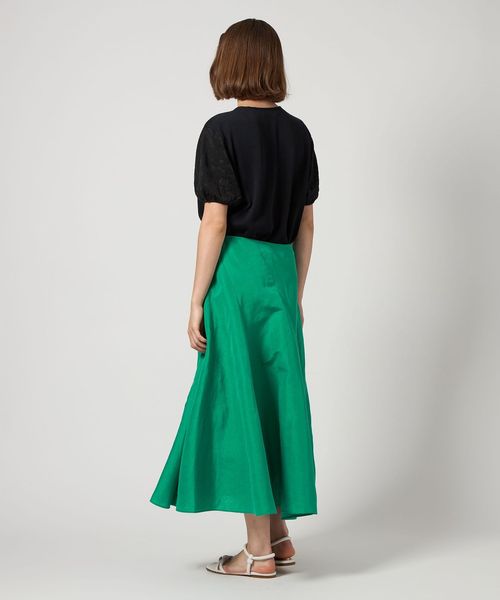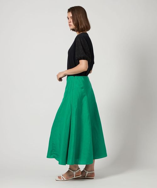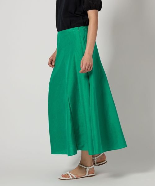 鮮やかな色合いと美しい素材感が魅力のフレアスカート