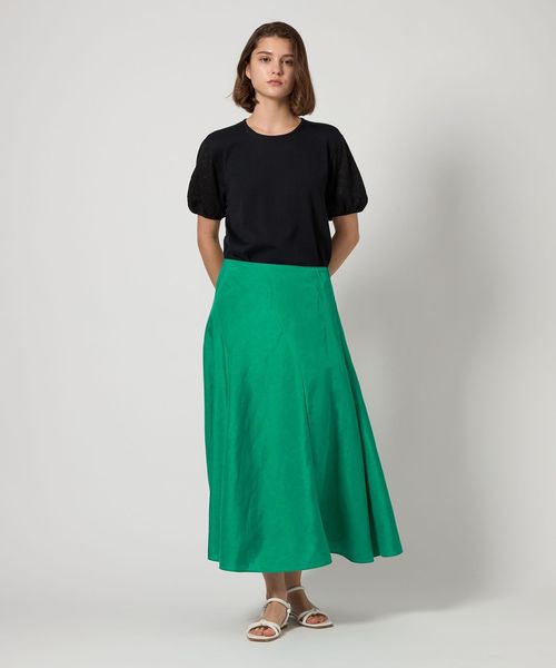 裾に向かって斜めの切替ラインを入れフレアラインを演出したスカート。