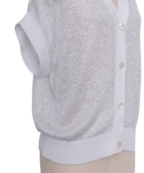 清涼感のある生地に散りばめられたスパンコールが、上品な雰囲気を漂わせるショートスリーブのカーディガン。